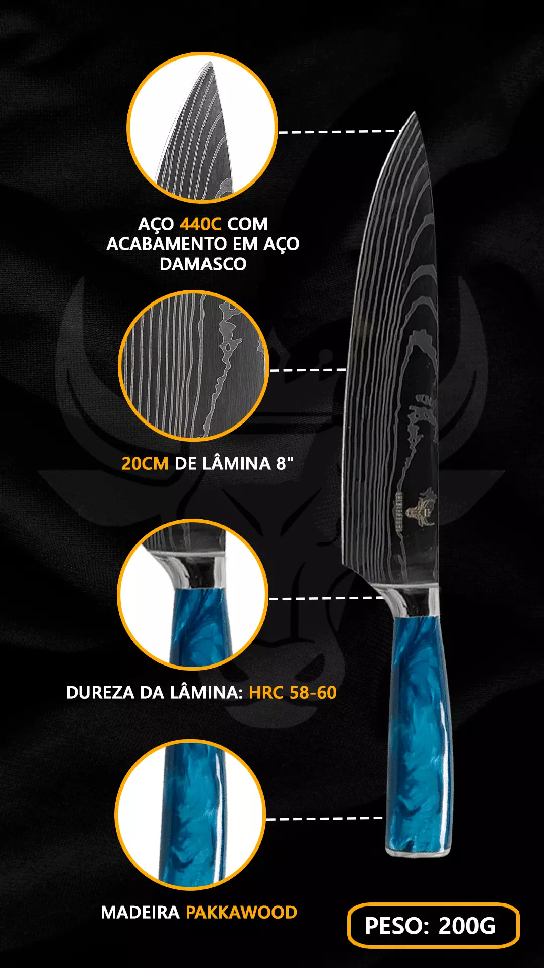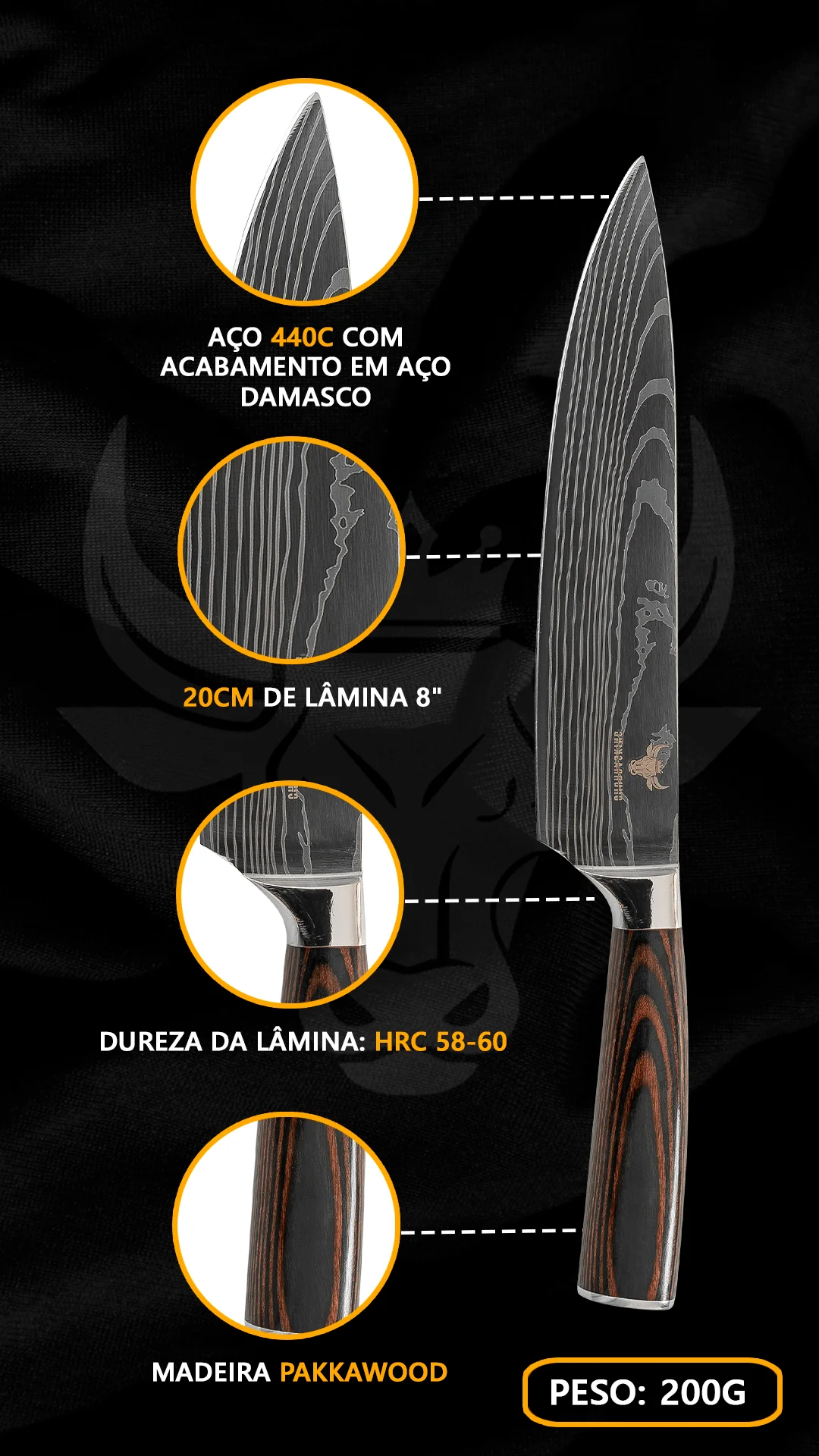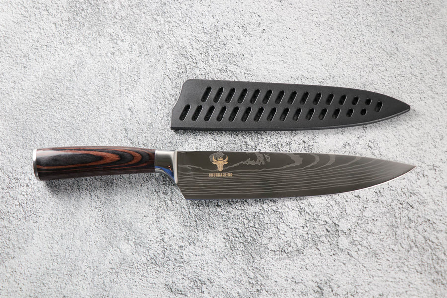 Odkryj czarny nóż szefa kuchni, wykończenie ze stali damasceńskiej, standard jakości